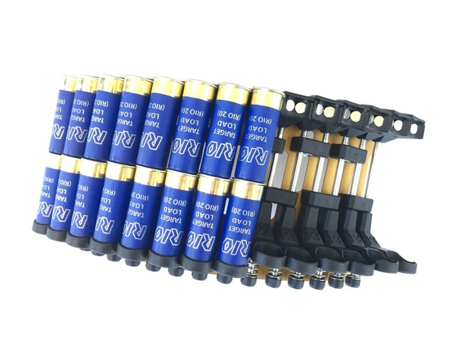 Shells are staggered for right- or left-handed grip and are spaced with minimum distance to each other. Required belt space is also minimized. Positioning of the shells is absolute uniform through the rig and allows for consistent use of all modern shotgun loading techniques and for example mixing load-2 and load-4.