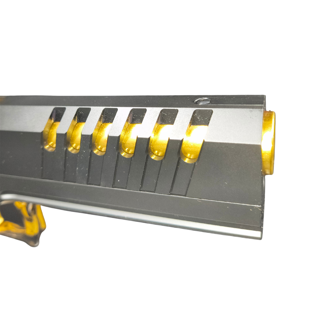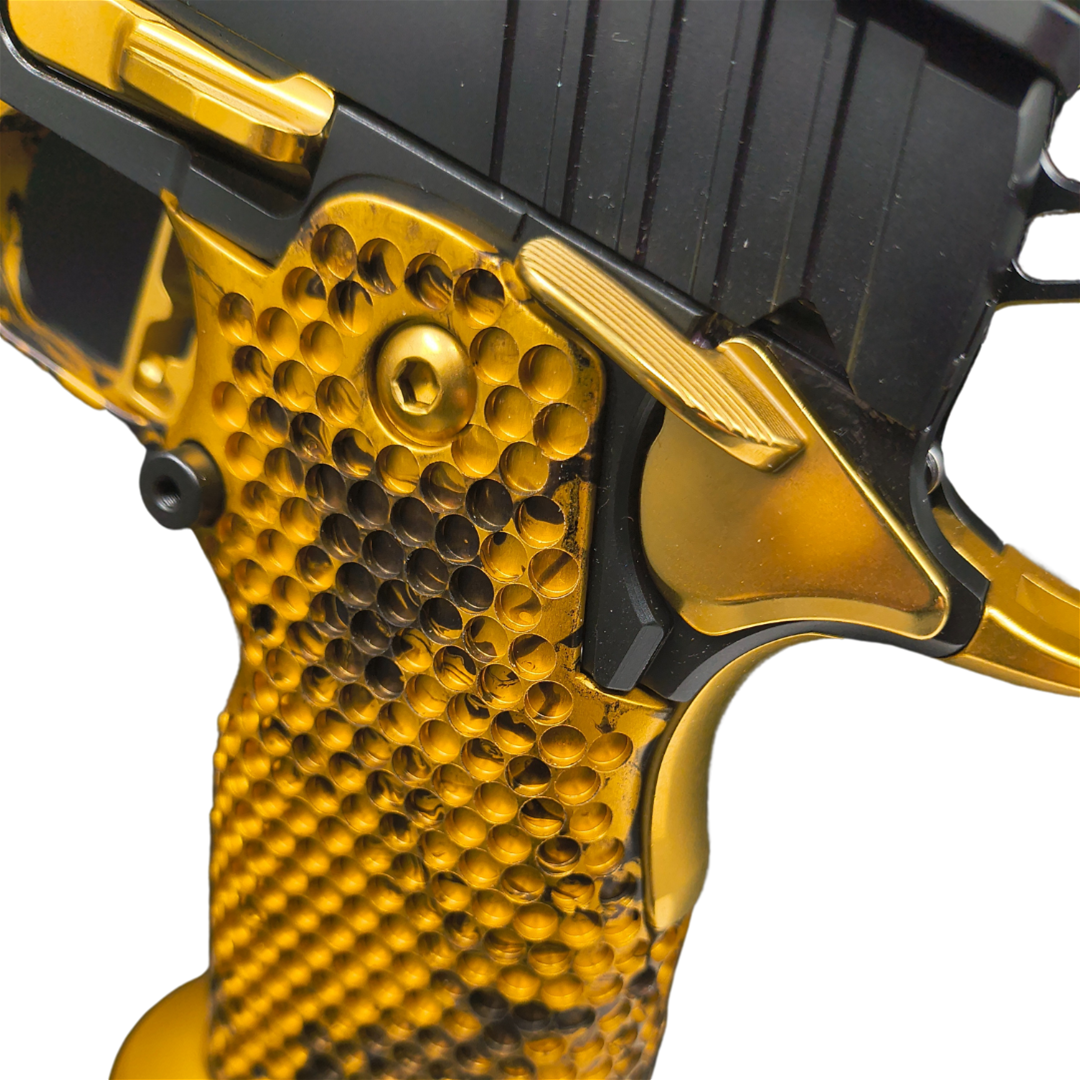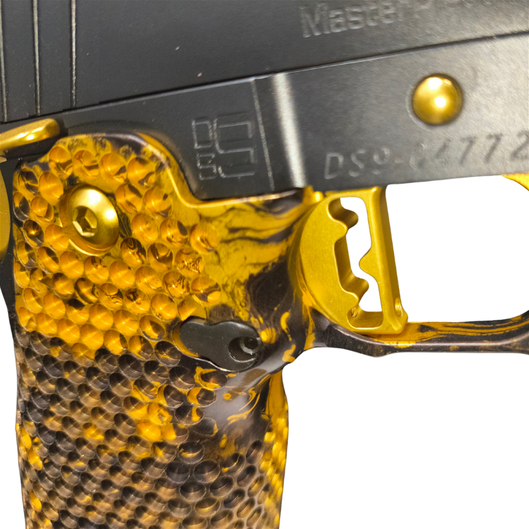 The DS9 Hybrid is a Wide Body, Double Stack 1911 Pistol. This pistol was created to run either iron sights or reflex sights. Hand Built, Fitted and Tuned. Incredibly Accurate and Reliable with a lifetime warranty.