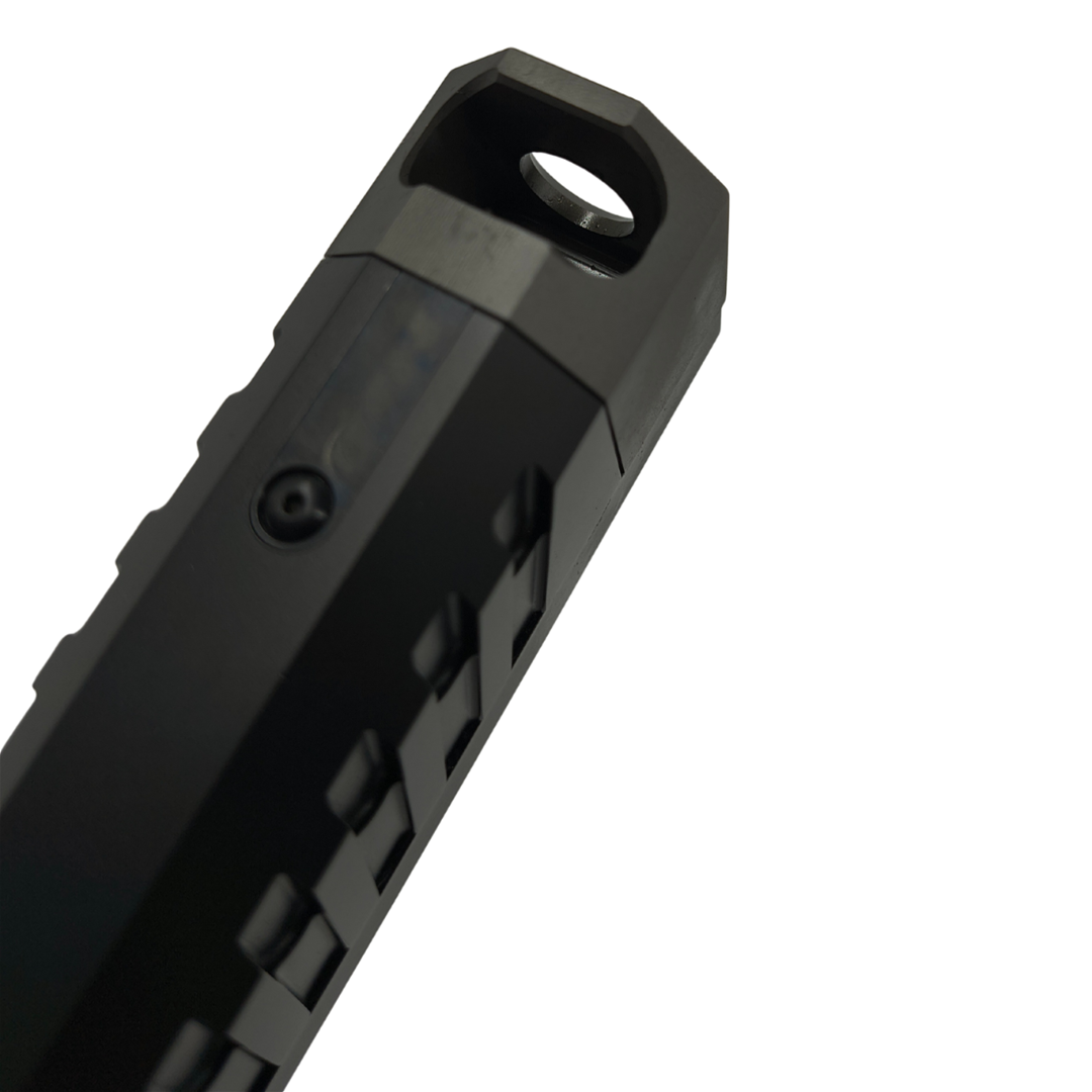 MPA DS9 Hybrid IDPA – V2 Version is designed specifically for those who compete in IDPA Pistol competitions, with the enhanced feature of a titanium compensator. The gun is very well balanced, and the lightweight configuration makes it easy to handle, and the Single Port Compensator makes the gun even more enjoyable to shoot.