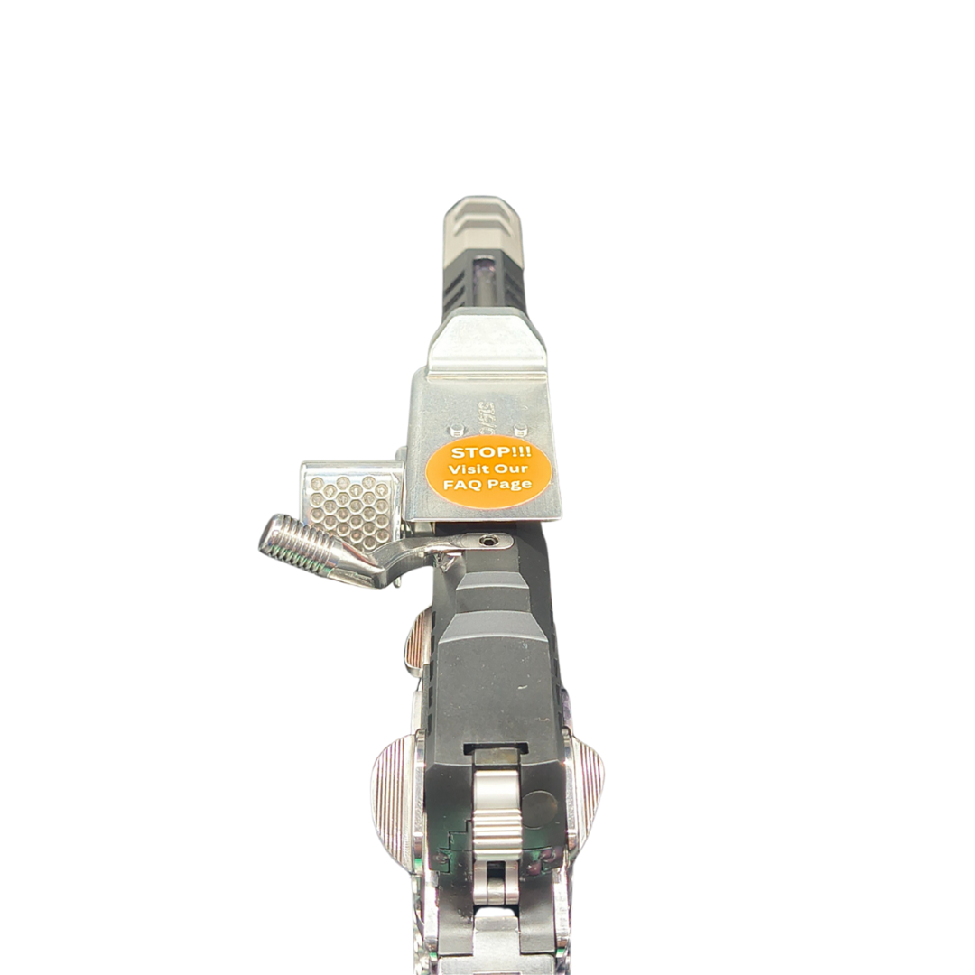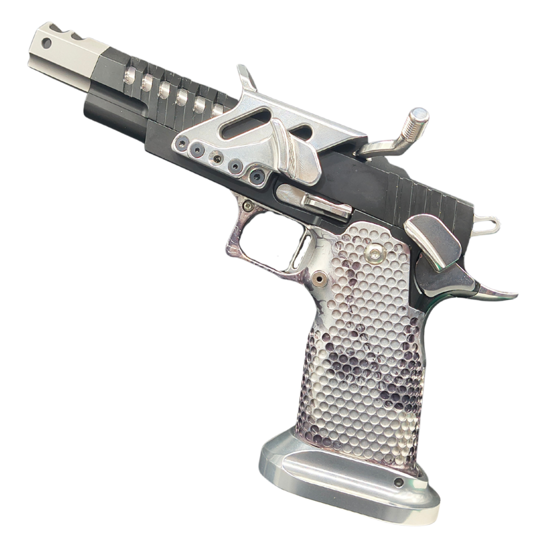 This Race gun is a designed to perform in USPSA Steel Challenge competitions. This is very similar to our Open Pistol, but allows the use of 9mm Minor (Factory Loaded 9mm ammo). It also includes a lighter aluminum grip for quick transitions of the pistol during these competitions.