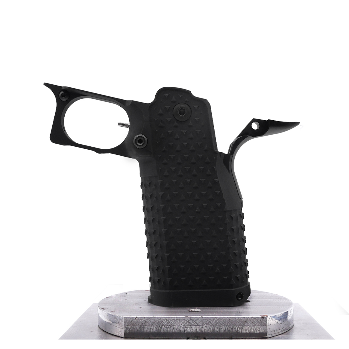 - Black Anodized Aluminum Mainspring Housing: Features the same durable 7075 aluminum material and a matching delta pattern for consistency and added surface area to improve grip and recoil management.