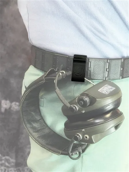 Designed for practicality and compatibility, this ultra low-profile clip snaps straight onto any DAA belt including Lynx, Premium, and Ratchet, and holds your hearing protection by the wire arms.