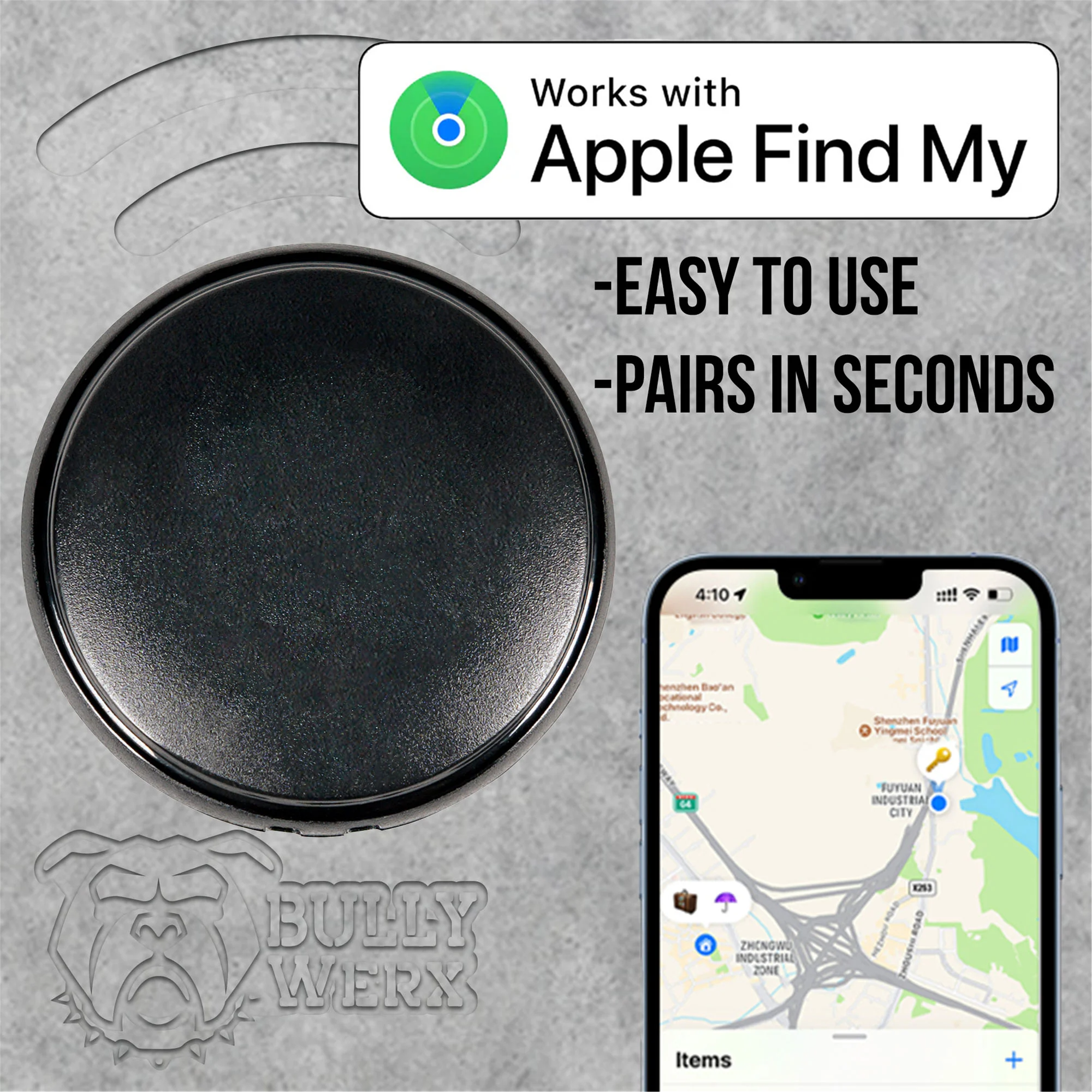 To use the latest Apple Find My app to locate the BullyTRAKR, the latest version of IOS, iPad OS, or macOS is recommended.
