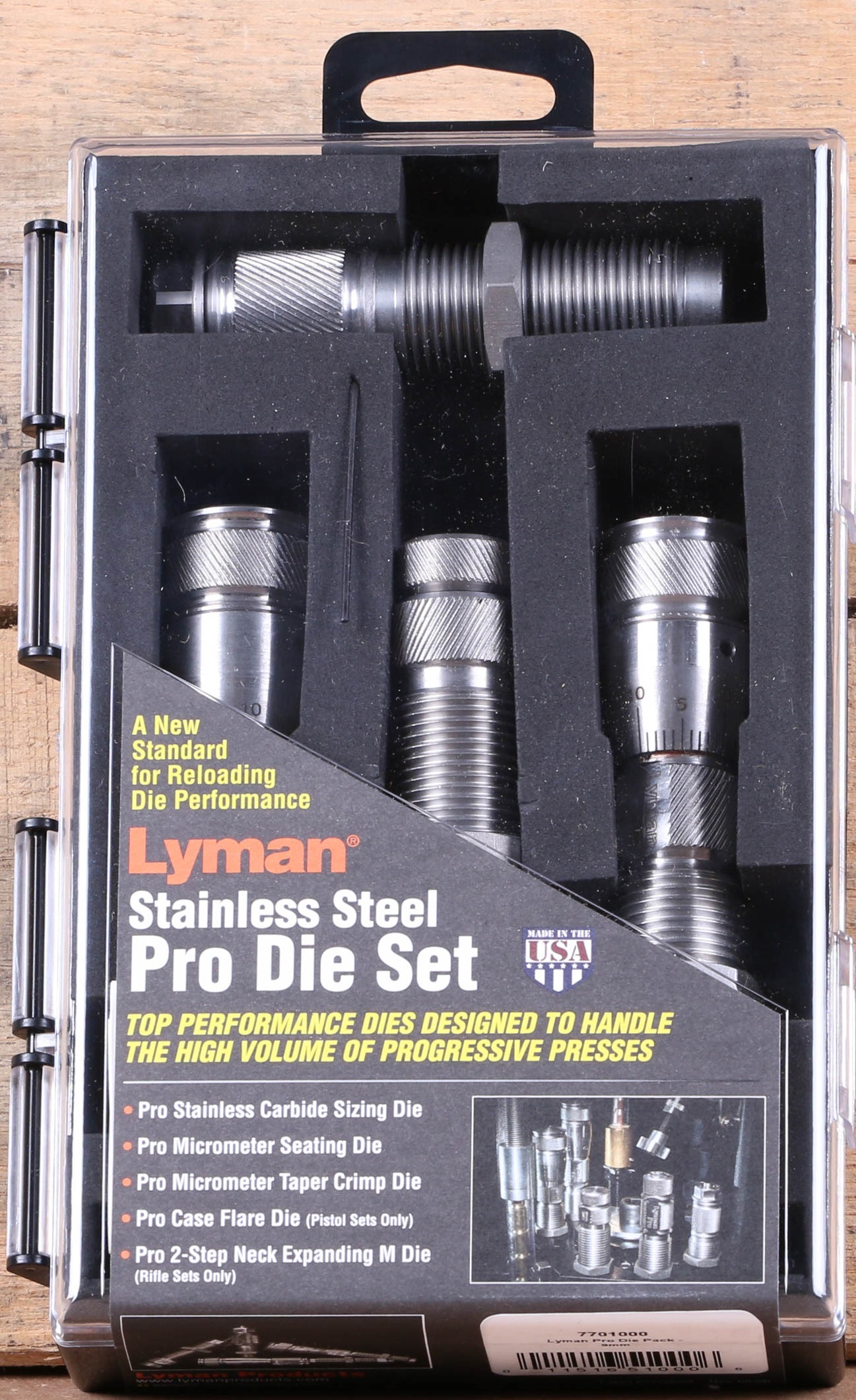 Finally, each set is equipped with a taper crimp die (micrometer adjustable) to fully remove any case mouth flare and to provide improved bullet retention. Lyman Pro dies offer more features at a better price than any competitive dies available!