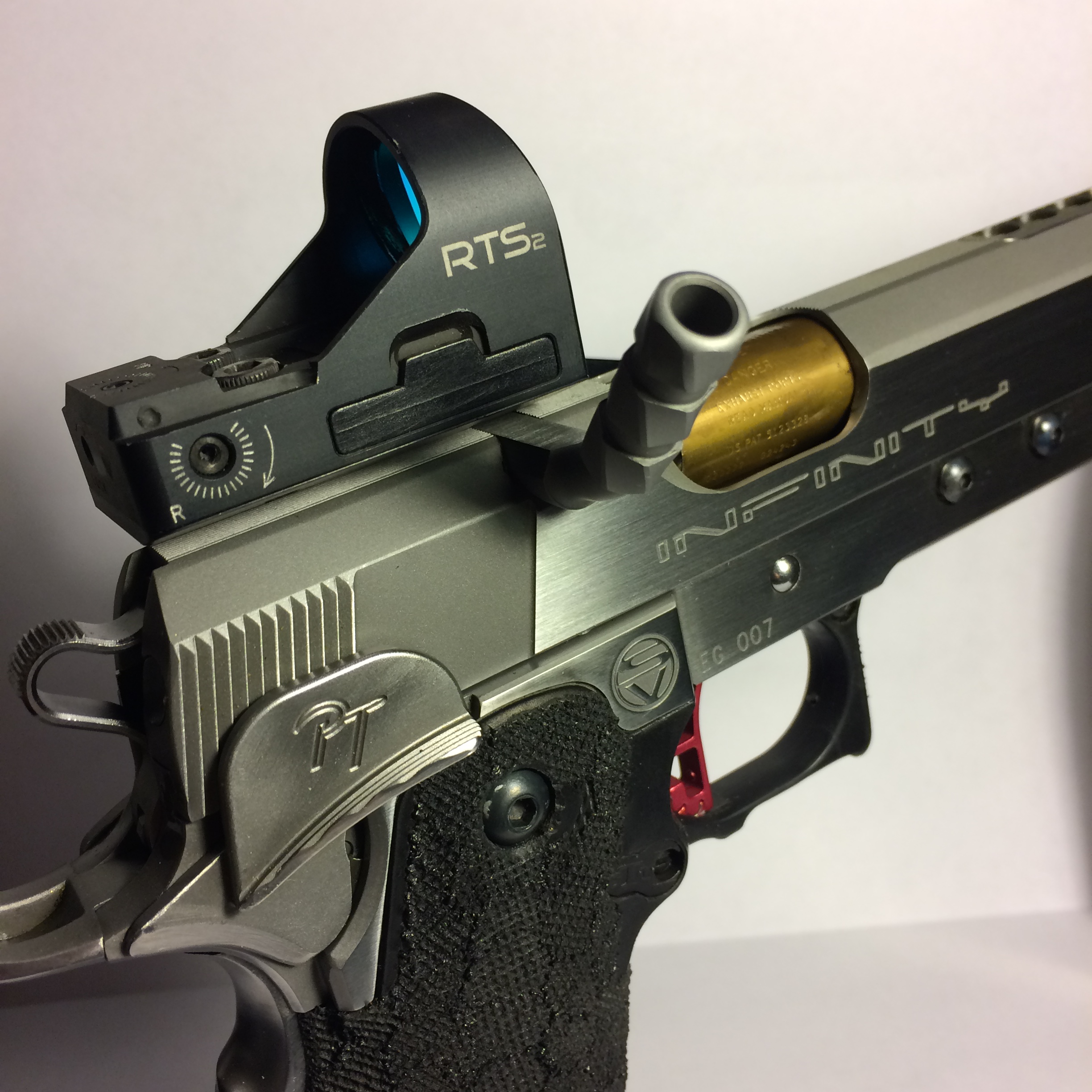 Mount is designed around the standard 0.830" wide dust cover with a flat topped slide. If used with wider frames the mounting pad will need to be machined narrower and if used with a narrower frame a spacer may be required. The final fore and aft location of the RTS2 will depend on the location of the hole pattern in the frame. As always, installation by a competent gunsmith is required. Fitting may be required to ensure ample clearance between the mount and slide.