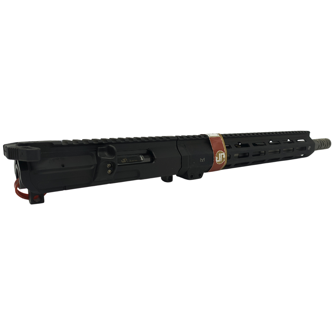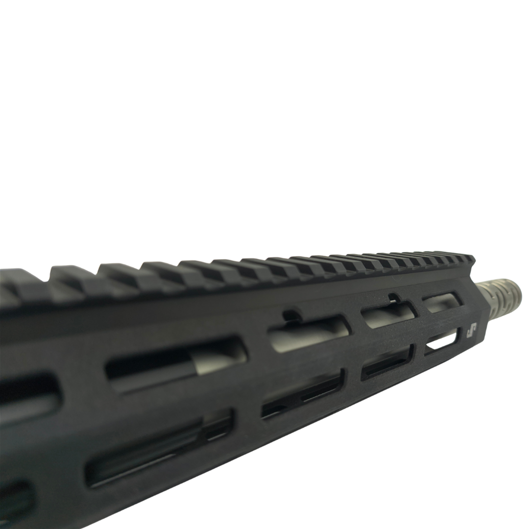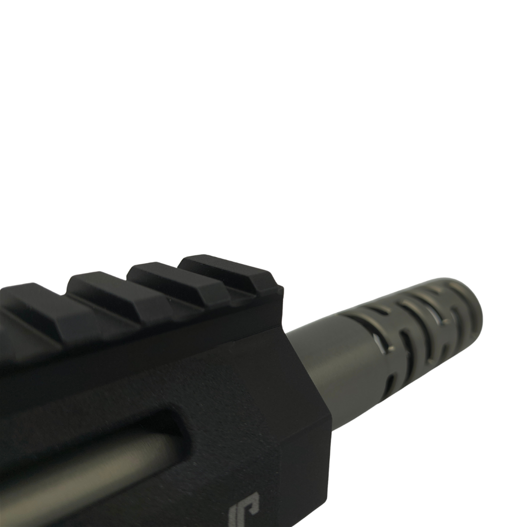 | Barrel: | 5.5"/16" JP Supermatch™ Ultralight 9mm ● 5.5"/16" ● 1:10 twist 5.5" steel Supermatch™ barrel with welded aluminum shroud to ATF-legal 16" OAL Please read our 9mm Barrel Accuracy Notice. Approximate Weight: 1.0 lbs |