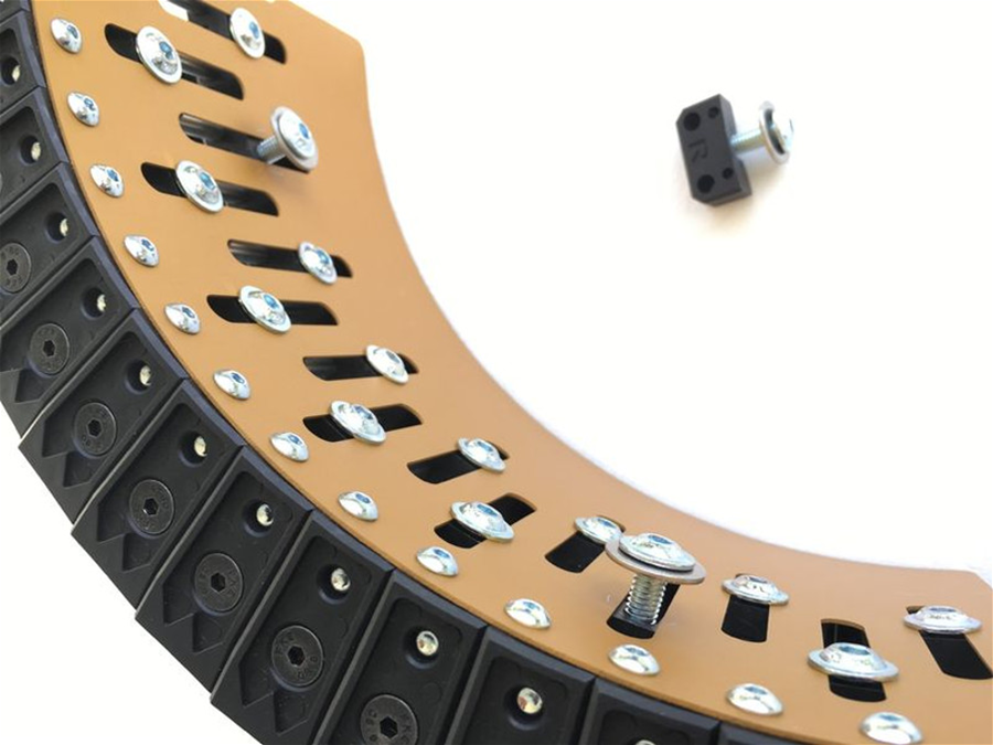 The skeleton construction makes the system very rigid and allows mounting directly to the several skeleton links with a large steel M6-thread. The rig can be mounted with bolts, hook&loop or with a adapter. All mounting hardware is supplied with the rig (adapter not included in sizes ASSM20 and bigger).