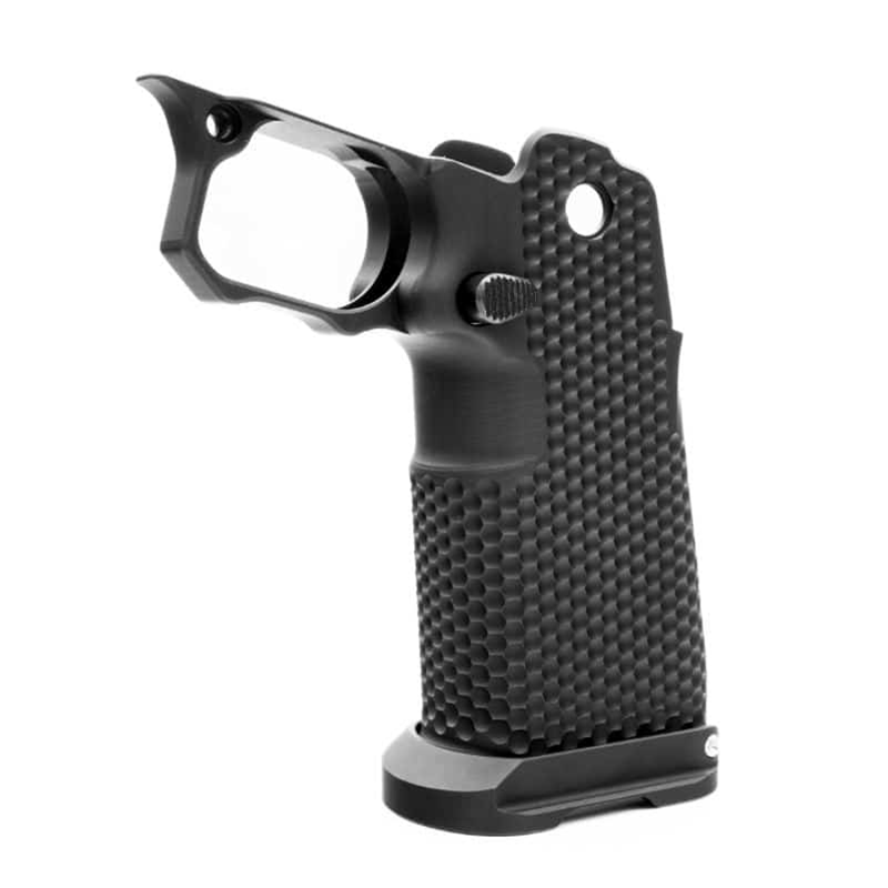 Made from 7075 Aluminum, offered in Black anodize. Our Magwells have been designed to be as low profile as possible and provide little to no change in comfort on the pistol grip. These Magwells are proprietary and will only fit our grip modules. Magwells will fit both standard and Enhanced Grip Shapes. Each Magwell Includes an Extended Mainspring Housing Grip Pin.