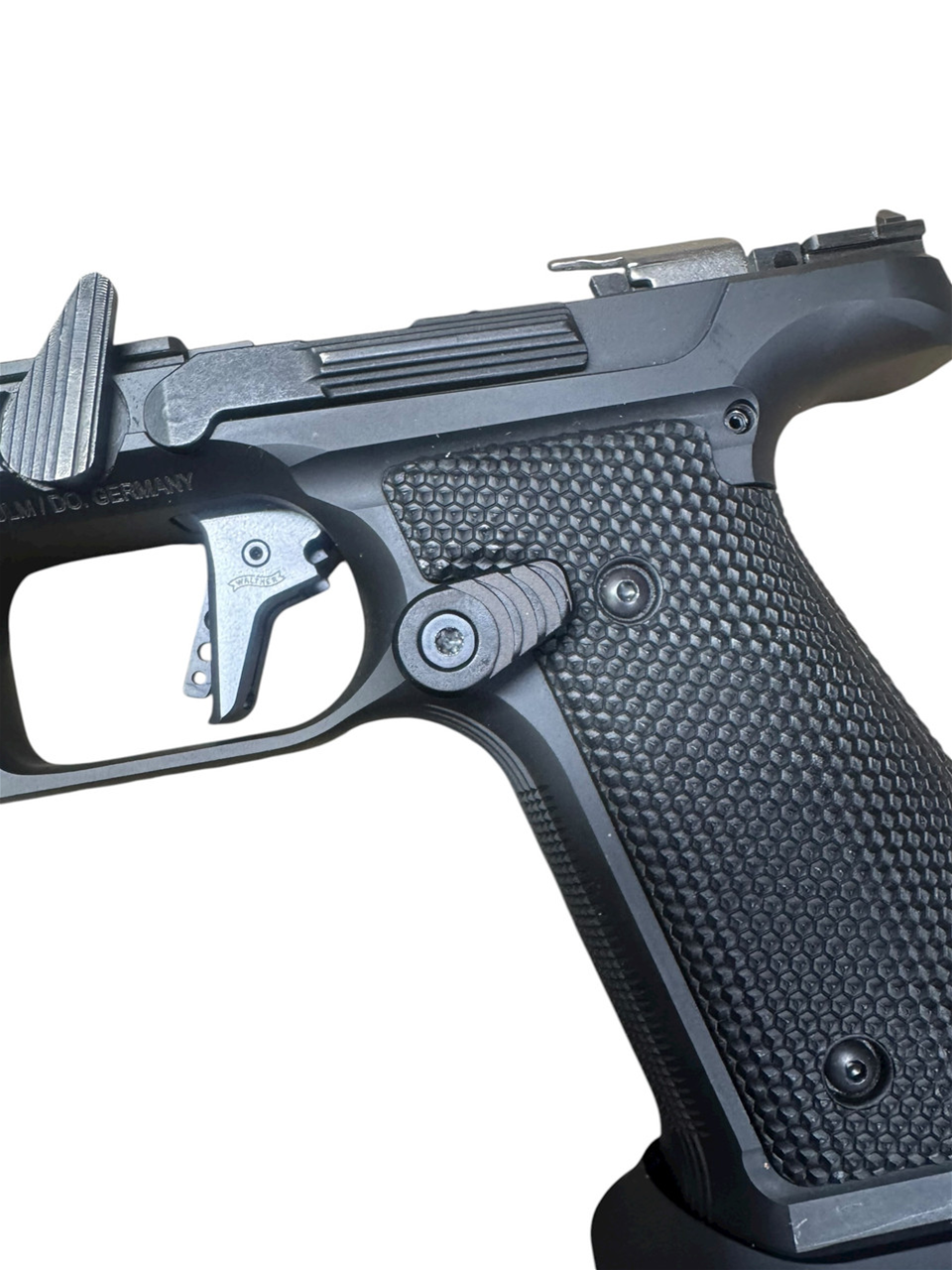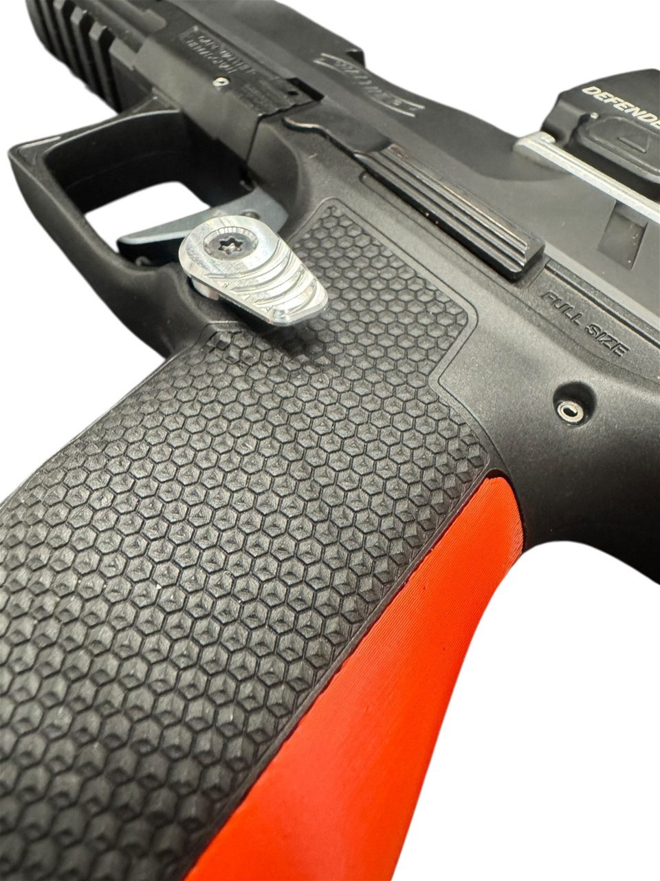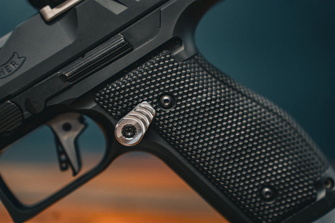 Our extended magazine releases utilize the OEM Walther release that we have machined to accept an M3 screw. Our extended buttons are machined from 6061 aluminum and attached at the angle you choose by simply tightening it down with a T10 wrench.