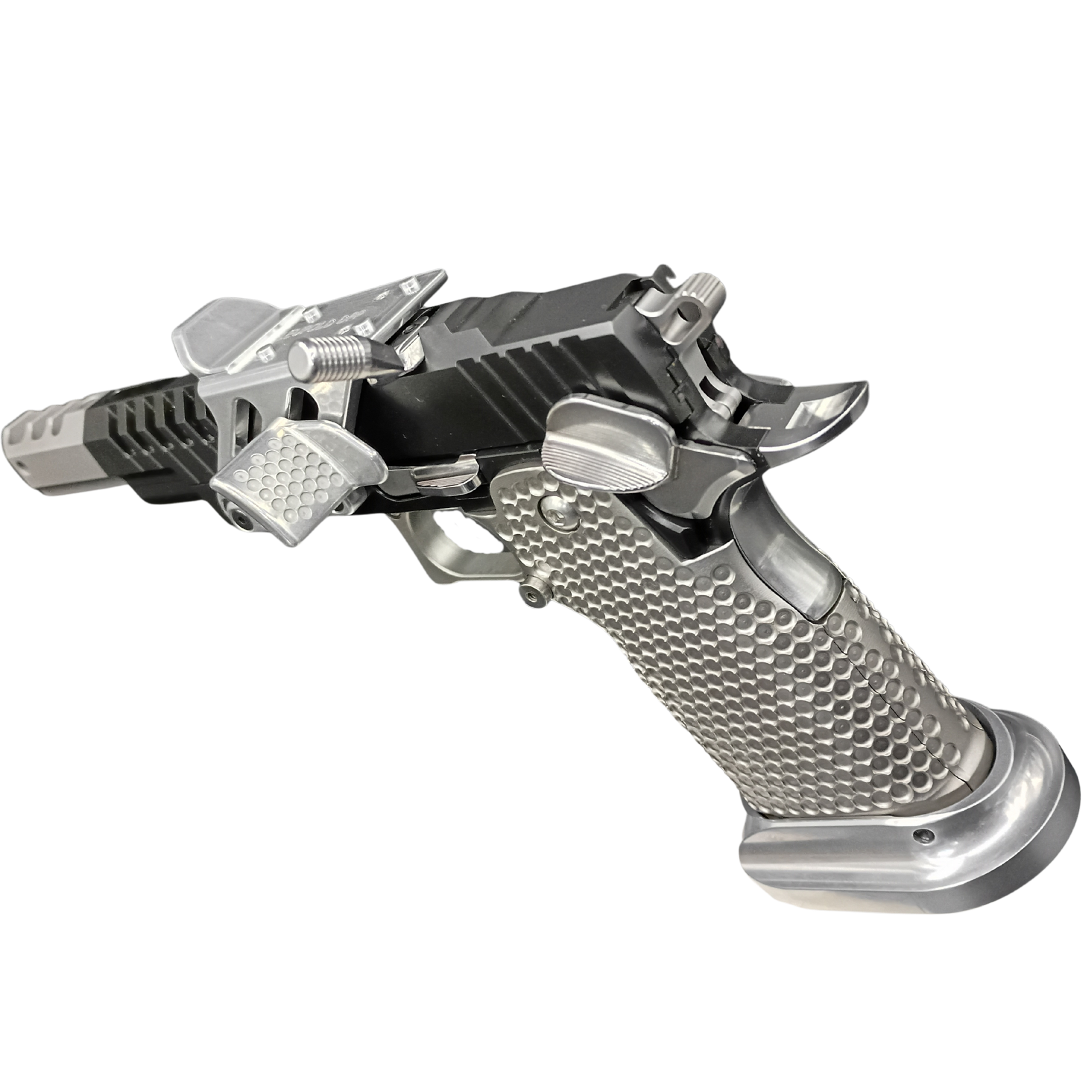 This Race gun is a finely tuned pistol, designed to be run in Open Division in USPSA Shooting Comps including: