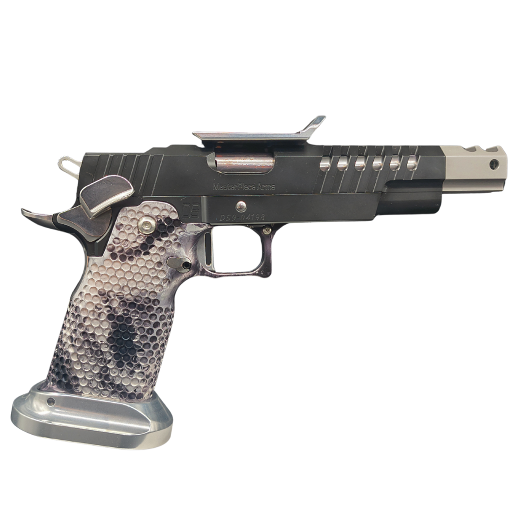 This Race gun is a designed to perform in USPSA Steel Challenge competitions. This is very similar to our Open Pistol, but allows the use of 9mm Minor (Factory Loaded 9mm ammo). It also includes a lighter aluminum grip for quick transitions of the pistol during these competitions.