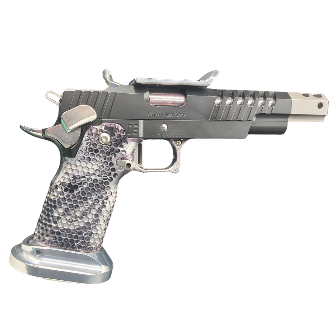 • All Parts machined in USA. Components machined by MPA: Frame, Slide, Barrel, Beavertail, Ambi Safety, Slide Stop, Firing Pin Stop, Ejector, Magwell, Aluminum and Stainless Grip