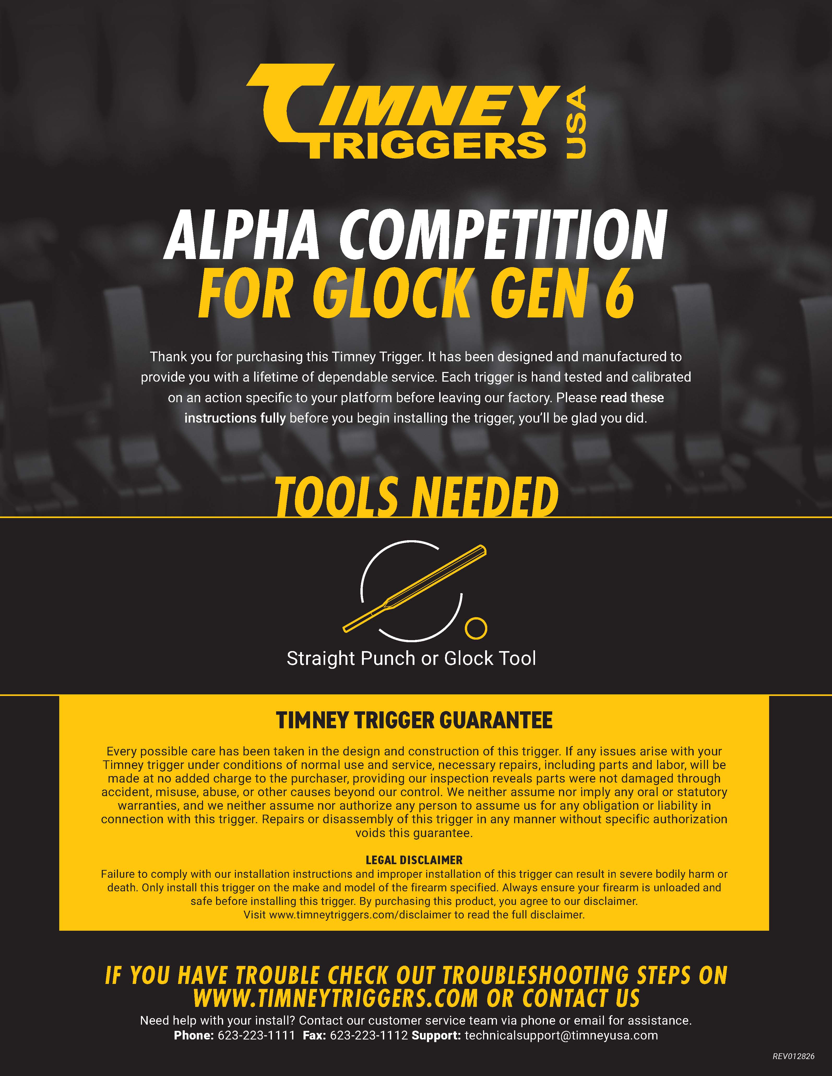 - ONLY COMPATIBLE WITH STOCK GLOCK PISTOLS - INTENDED FOR COMPETITION USE ONLY.