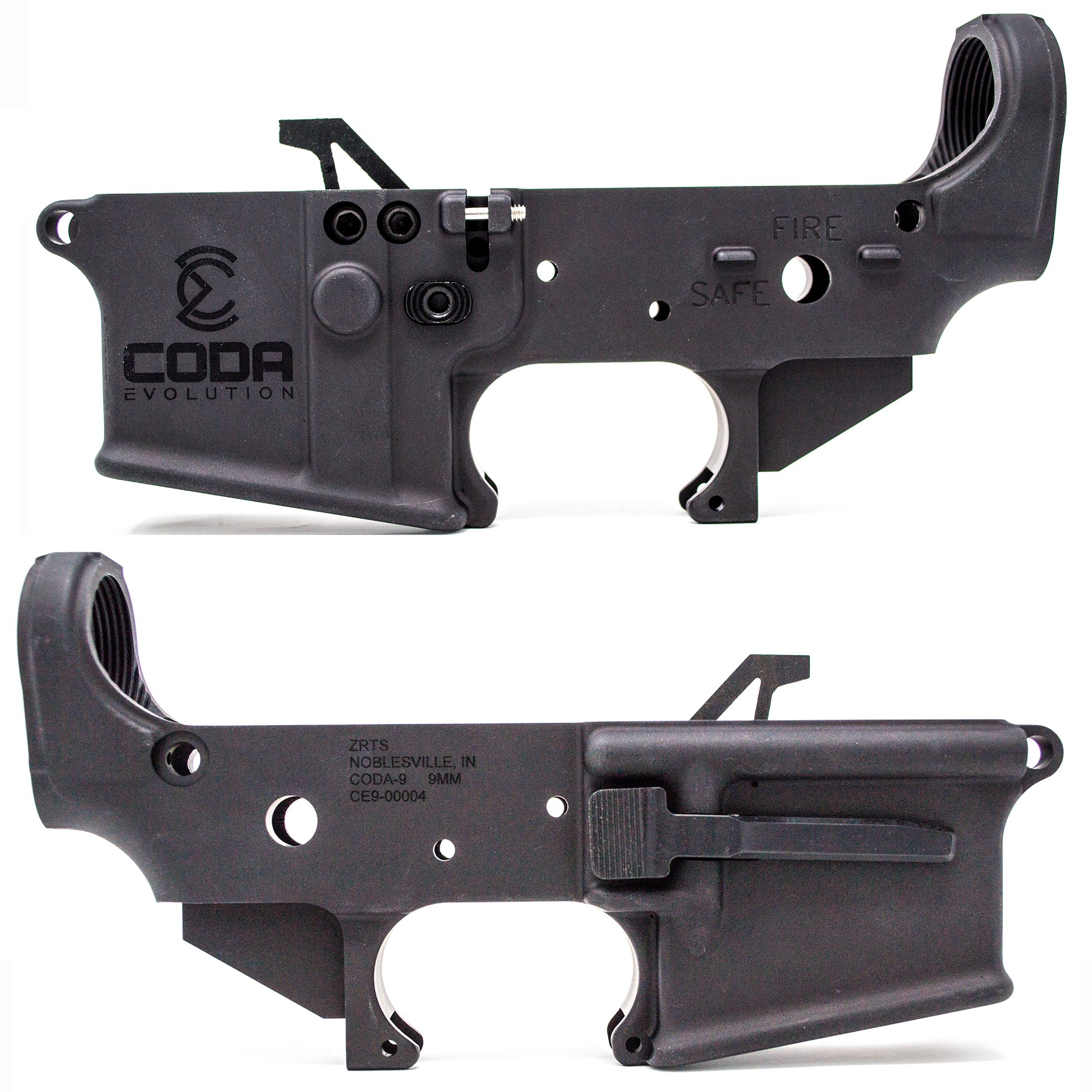 Our NEW CODA-9 , a 9mm, Glock magazine compatible, Lower Receiver with a FULL-TIME AMBIDEXTROUS Magazine Release – a mag-release button ON EACH SIDE !