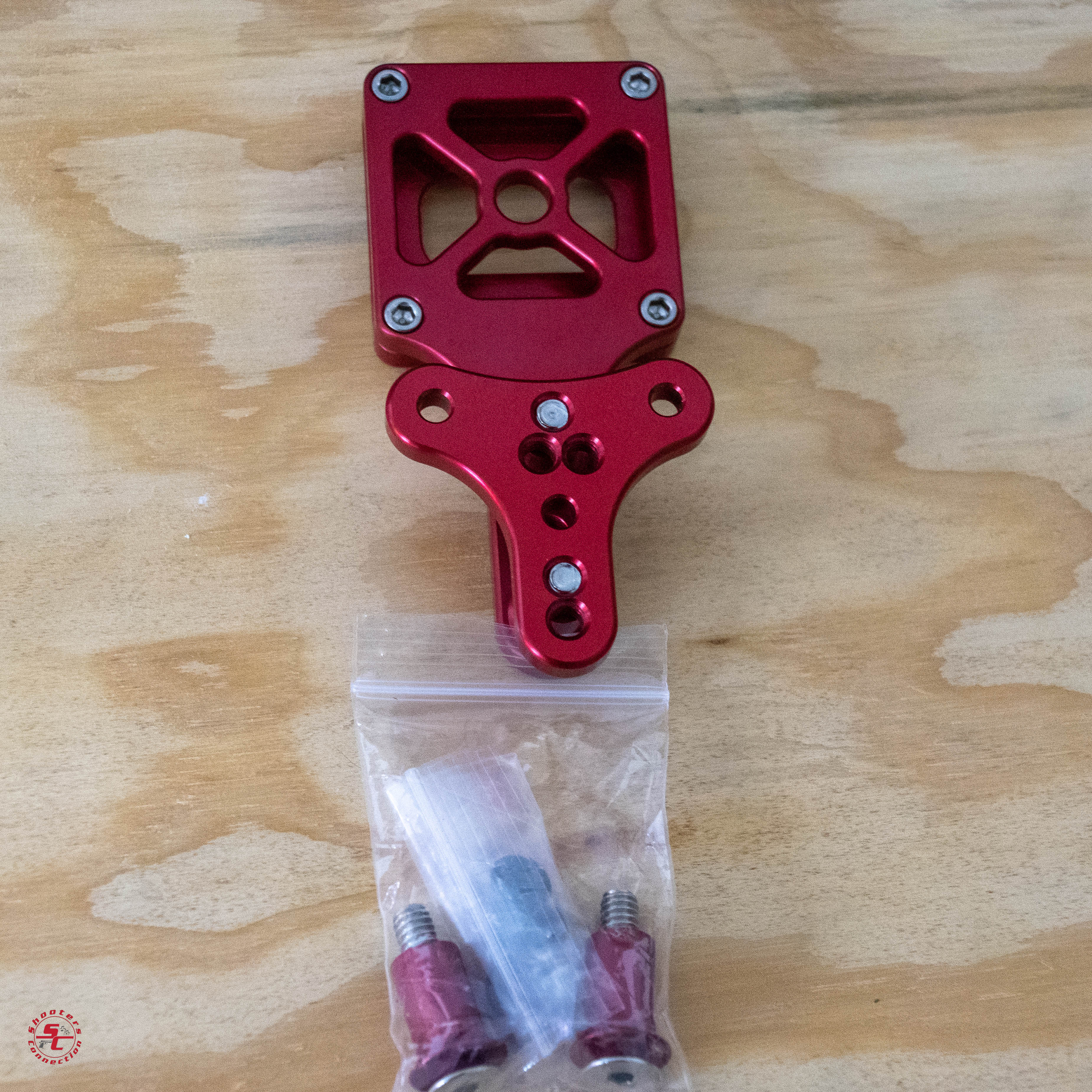 This holster hanger is a product that was born out of necessity. No needless adjustments or pieces to come loose or slide out of place. This rigid design paired with a solid shooting belt will have you more consistently drawing your gun from your holster every time. Spaced properly to fall within the rules of applicable USPSA divisions, this hanger comes with two T plates. The first being a 90 degree, the second being a forward or rearward adjustment of 5 and 10 degrees. Simply flip the plate for adjustments in the opposite direction. These are CNC machined from 6061 aluminum, and type 2 hard anodized in Black, Blue, or Red. Mounting hardware is included and once it’s set in place it’s not going anywhere. Note: These are made to fit 1.5” belts.