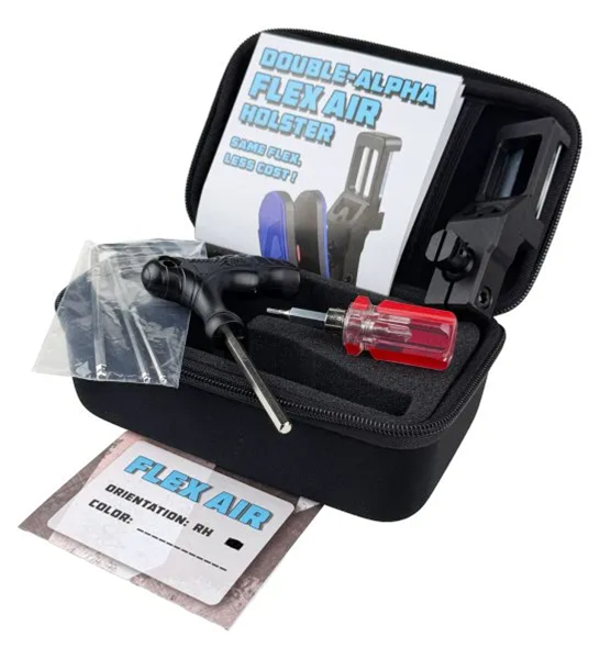 The DAA Flex / Flex Air holster is an evolution of the Alpha-X holster. Its aluminum chassis borrows heavily from that predecessor while adding useful upgrades. The most notable advancement is the new, patented Flex Insert Block Assembly. This design enables the user to custom-fit the holster to their specific pistol—accommodating variations between models, types or generations—so fitment issues are eliminated. Users can quickly and easily adjust for a precise fit every time.