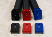 Glock 9/40 extended base pads are CNC machined from aluminum and hard anodized. This lengthens the magazine .25" to make for easier, more reliable magazine changes. They also allow you to use a magwell without adding capacity to the magazines. They are perfect for IDPA ESP and USPSA. 1.0 OZ