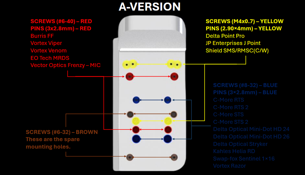Boss Components recommends 15-inch lbs of torque and a drip of blue Loctite on mounting screws. Use caution when installing screws as over-tightening can damage the mount. Please note mounting screws are not included, use the screws supplied with the red dot. The use of a certified gunsmith is always recommended.